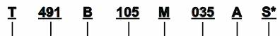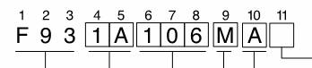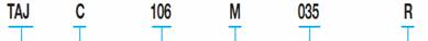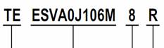 类型 额定电压 额定容量 误差 型号 编带形状 电压代码: 0G=4V 0J=6.3V 1A=10V 1C=16V 1D=20V 1E=25V 1V=35V 容量换算: 106=10X10 6 =10UF 227=22X10 7 =220UF 2 . KEMET 钽电容(例: B 1uf 35v )