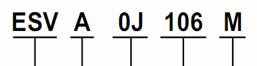 系列 型号 额定容量 误差 额定电压 编带形状 4 . NEC 钽电容(例: A 10uf 6.3v )